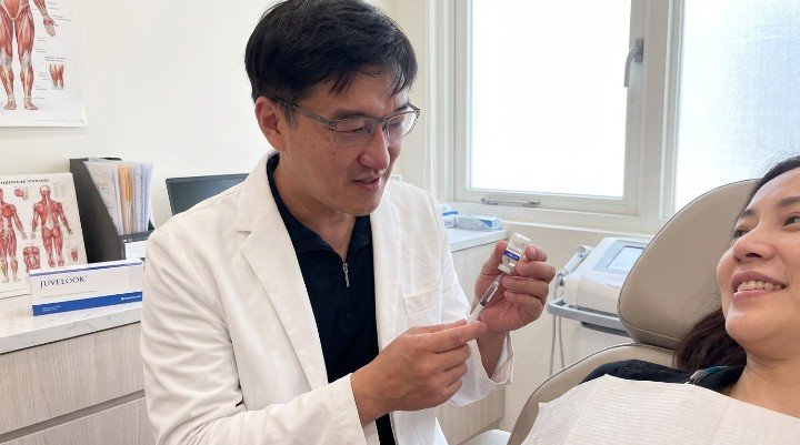 醫師專業操作Juvelook喬雅露痛感極低 診所細心敷麻緩解Juvelook喬雅露痛感 患者表情輕鬆展現Juvelook喬雅露痛感輕微 展示精密針頭說明Juvelook喬雅露痛感